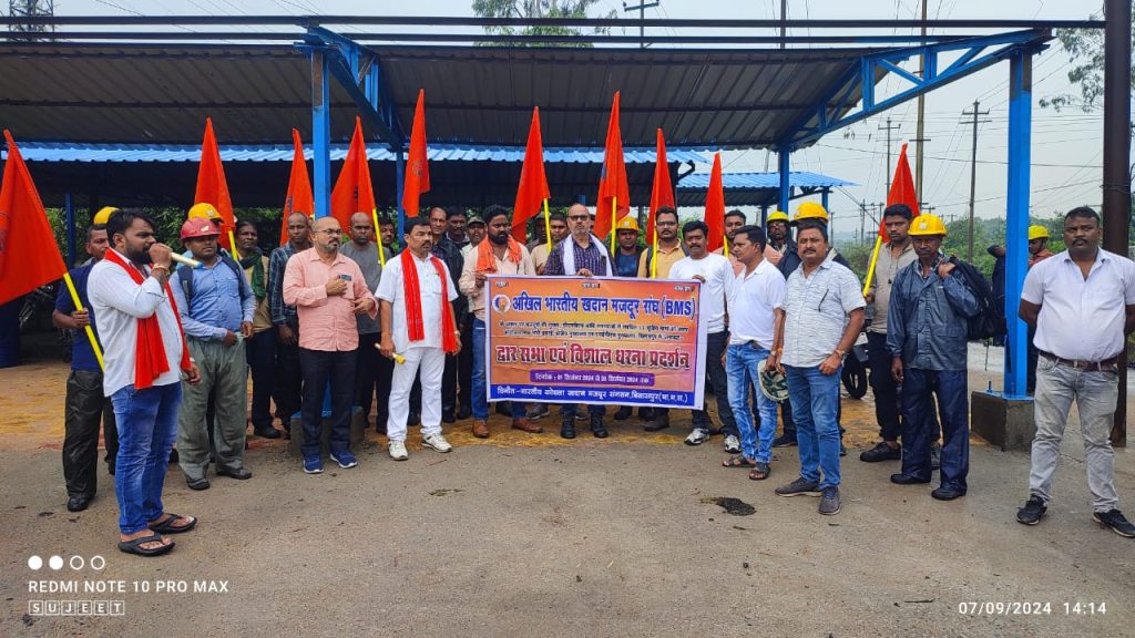 बीएमएस ने गेवरा में गेट मिटिंग कर किया प्रदर्शन