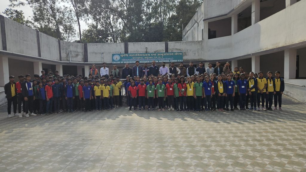 कोरबा- कटघोरा (शिवशंकर जायसवाल)। कृषि महाविद्यालय एवं अनुसंधान केंद्र कटघोरा लगातार अपने कृषि एवं कृषकों के के उत्थान में एवं मार्गदर्शन करने हेतु सतत नवाचार युक्त कार्यक्रमों का आयोजन किया जाता है। इसी कड़ी में शुक्रवार को पीएमश्री एकलव्य विद्यालय के 280 छात्र छात्रा के द्वारा कृषि महाविद्यालय में भ्रमण किया गया। जिसमें मुख्य रूप से माध्यमिक कक्षा के छठवीं, सातवीं, आठवीं एवं नवमी में अध्ययनरत छात्रों को प्राचार्य डॉ असद अहमद के निर्देशानुसार डा अशोक चौधरी एवं अन्य शिक्षकों के मार्गदर्शन में भ्रमण हेतु कृषि महाविद्यालय लाया गया। कृषि महाविद्यालय के सभी स्टाफ द्वारा छात्र-छात्राओं एवं आगंतुक स्टाफ का आत्मीय रूप से स्वागत किया गया तथा तत्कालीन अधिष्ठाता डा जीपी भास्कर द्वारा कृषि महाविद्यालय एवं बीएससी कृषि पाठ्यक्रम के संबंध में जानकारी दी गई। डा दुष्यंत कुमार कौशिक के द्वारा सभी छात्र-छात्राओं को कीट प्रयोगशाला दिखाया गया। साथ ही फेरोमेन ट्रैप एवं अन्य रासायनिक रहित कीट नाशकों की जानकारी दी गई। डा देवेंद्र चौधरी द्वारा कृषि क्षेत्र में लगने वाले फसलों में बीमारियों तथा उनके रोकथाम के बारे में जानकारी दी गई एवं प्रयोगशाला में क्या-क्या सामग्री होती है के संबंध में बताया गया साथ ही मशरूम इकाई का भी भ्रमण करवाया गया। डा प्रियल पांडे के द्वारा मिट्टी के जांच संबंधी उपकरणों के बारे में बताया गया तथा मृदा जांच से लाभ के बारे में बताया गया। डा चंद्रेश धुर्वे द्वारा सभी छात्र-छात्राओं को वर्मी कंपोस्ट उत्पादन उसके उपयोगिता तथा प्रकृति के संरक्षण के विषय में जानकारी दी गई। योगेंद्र सिंह तथा देवेश्वर पटेल द्वारा कृषि प्रक्षेत्र में उद्यानिकी फसलों एवं फलदार छायादार पौधे के बारे में भ्रमण कर दिखाया गया। डा रोशन भारद्वाज द्वारा कृषि महाविद्यालय के बारे में जानकारी दिया गया।