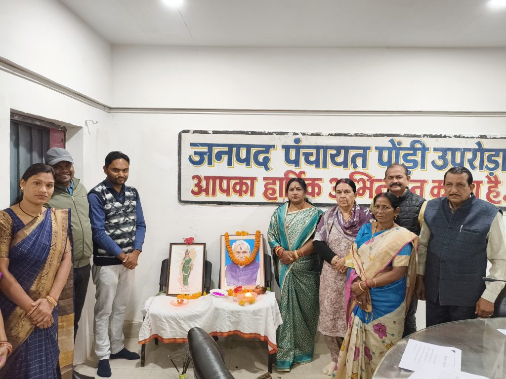 दिवंगत अटल बिहारी वाजपेयी पूर्व प्रधानमंत्री के छायाचित्र पर फूल, माला अर्पण कर उनकी संदेशों का वाचन किया गया, इस अवसर जनपद पंचायत पोड़ी उपरोड़ा कार्यालय स्टाफ, अधिकारी,कर्मचारी, सचिव ग्राम पंचायत व बिहान के दीदी उपस्थित रहे l