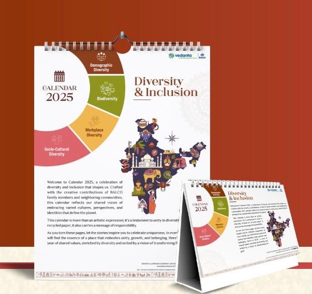 अपने समावेशी लक्ष्यों की दिशा में काम करते हुए बालको कैलेंडर ‘विविधता और समावेशी’ थीम पर केंद्रित है जो जनसांख्यिकी, कार्यस्थल, जैव और सामाजिक एवं सांस्कृतिक विविधता के सभी पहलुओं को समझने के उद्देश्य से डिज़ाइन किया गया है। हर महीने में, आपको एक ऐसी विविधता का सार मिलेगा जो एकता, विकास और अपनेपन का प्रतीक है। यह कैलेंडर एक कलात्मक अभिव्यक्ति से अधिक, विविधता में एकता का प्रमाण है। कैलेंडर विभिन्न संस्कृति और साझा दृष्टिकोण को दर्शाता है। कंपनी कार्यस्थल और साथ ही अपने आस-पास के समुदाय में समावेशिता की संस्कृति को बढ़ावा देने के लिए निरंतर प्रयासरत हैं। व्यक्तियों की अद्वितीय क्षमताओं का जश्न मनाकर, सार्थक बदलाव लाने तथा उन्हें सशक्त बनाने में कंपनी विश्वास रखती है। समावेशी कार्यक्रमों के माध्यम अवसरों को तलाशने तथा सभी के लिए अधिक न्यायसंगत भविष्य बनाने के लिए कटिबद्ध है।