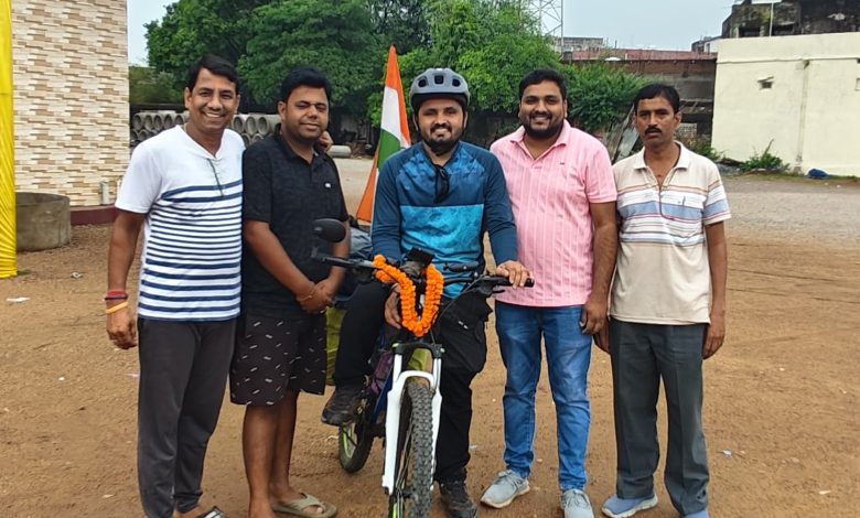एवरेस्ट साइकिल मिशन पर निकले पप्पू राम खिचड़ का कटघोरा में भव्य स्वागत