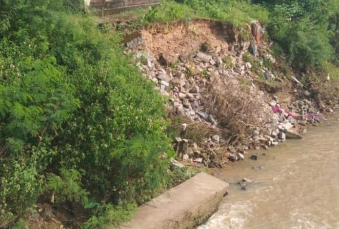 बाढ़ की चपेट में आने से मुक्तिधाम का आधा हिस्सा बह गया