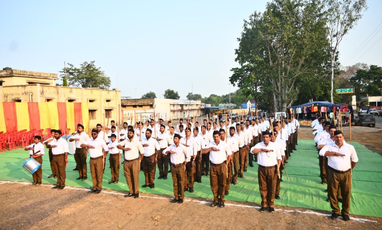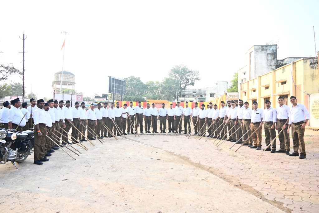 सैकड़ो राष्ट्रीय स्वयंसेवकों का पथ संचलन बैंड बाजा के साथ संपन्न हुआ। पथ संचलन के समय
