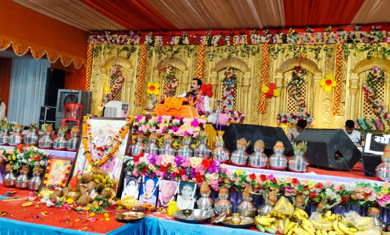 कटघोरा ( शिवशंकर जायसवाल ), श्रीमद भागवत ज्ञान यज्ञ का आयोजन रामायण जायसवालधर्म पत्नी संतोषी जायसवाल परिवार द्वारा अग्रसेन भवन में 23 नवंबर से प. टंकेश् दुबे द्वारा सुंदर ढंग से कथा प्रवचन सुना रहे है। संगीत मय भजन में घनश्याम दुबे,प्रेम दुबे एवं अन्य साथी द्वारा प्रस्तुत किया जा रहा है।आज कृष्ण बाल लीला संगीत के घुन के साथ सुनाए। कथा सुनकर श्रोता मंत्र मुग्ध हो गए। जब तक कथा प्रवचन चलते रहता है तब तक श्रोता अपनी जगह से हिलते भी नहीं।कथा सुनने के लिए एकार्ग रहते है।