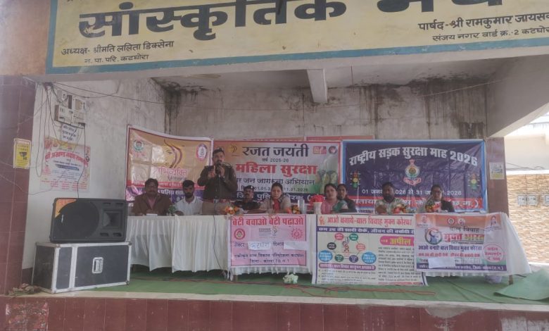 मंच में उपस्थित थानेदार धर्म नारायण तिवारी ने कहा कि पूरे छत्तीसगढ़ में महिला जागरूकता सुरक्षा कार्यक्रम मनाया जा रहा है, छग में 1 जनवरी से 11 जनवरी 2026 तक मनाया जाएगा। जिसमें कोरबा जिले के कटघोरा थाने के तहसील भाटा नवधा चौक में कार्यक्रम आयोजित किया गया। तिवारी जी ने कहा कि कार्यक्रम में महिलाओं की सुरक्षा हेतु दहेज प्रताड़ना,घरेलू हिंसा, टोनही प्रताड़ना ,बाल विवाह,सड़क सुरक्षा, साइबर क्राइम के बारे में संक्षिप्त जानकारी दिया गया एवं होने वाले अपराध से बचने के लिए 1098 मोबाइल नंबर से कॉल करने के लिए भी जानकारी गया। इसके अलावा वार्ड पार्षद हरीश यादव, पार्षद राजेश्वरी जा त्रा, ईश्वरी लहरें, चारु सुमिता बंजारे,अनीता शांडिल्य, सावित्री ने भी महिला जागरूकता के बारे में जानकारी दी।
